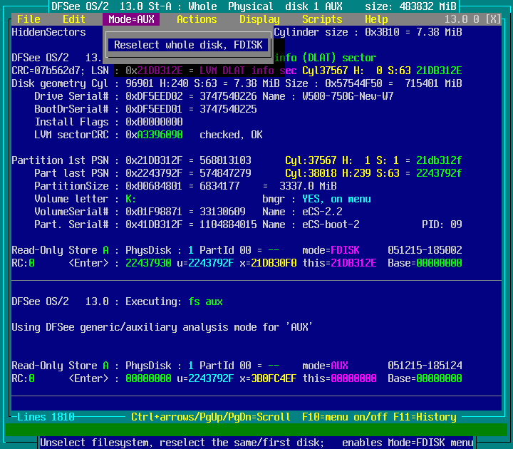 This will UNSELECT the current object/filesystem, and reselect a whole physical disk, either the same disk as the partition was on, or the first disk present in other cases. This is a quick way to change to 'Mode=FDISK' and work on disk-level issues - - - - - - - - - - - - - - - - - - - - - - - - - - - - - - - - - - - - - - - - - - Press <F1> again for more help; Some options may require switching to 'Expert mode'