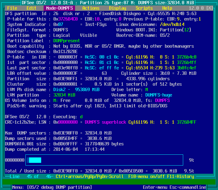 DFSee menu documentation for pulldown : Mode=DUMPFS