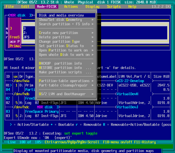 Mode=FDISK -> Disk and media overview : screenshot 2