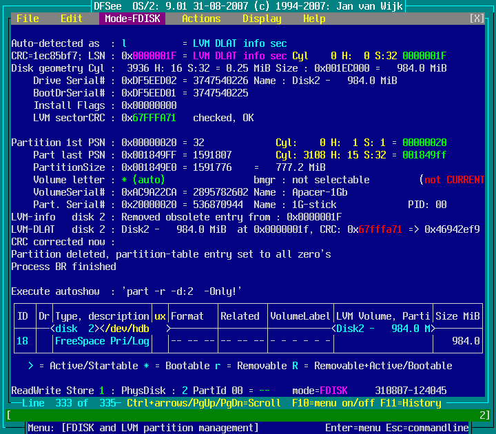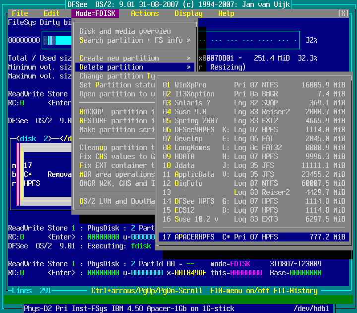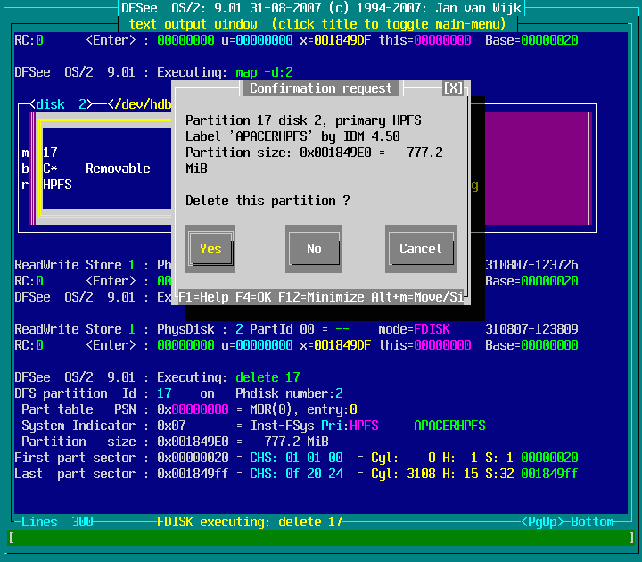 Mode=FDISK -> Delete partition : screenshot 2