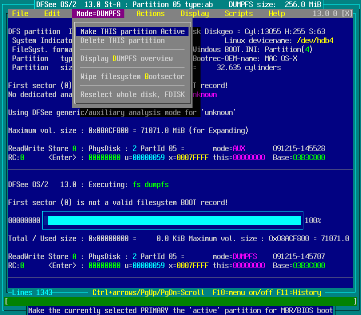 DFSee menu documentation for pulldown : Mode=DUMPFS