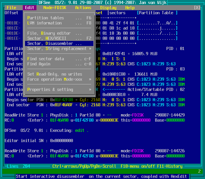 Edit -> Sector, Text/Strings ... : screenshot 1