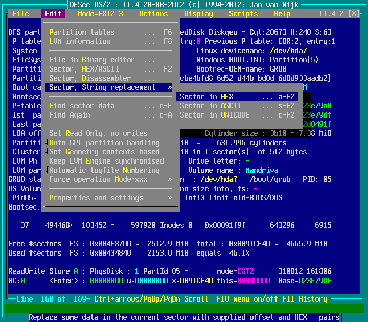 Edit -> Sector, String replacement -> Sector in HEX ... : screenshot 1