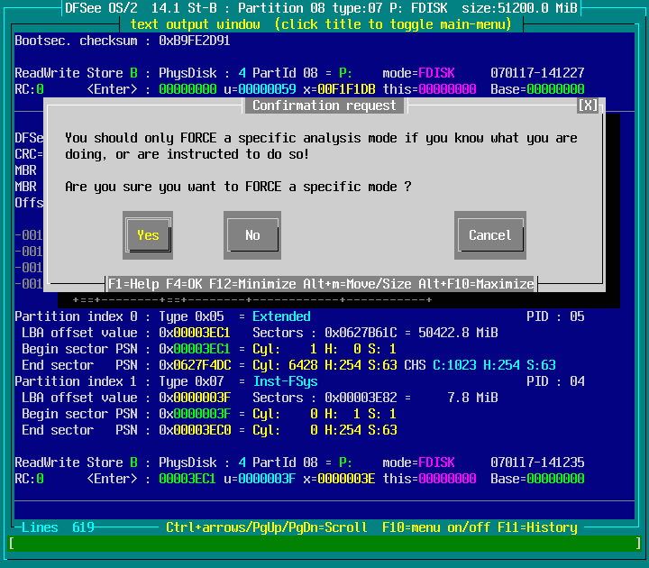 Edit -> Force operation Mode=xxx -> HPFS, OS/2 std native FS : screenshot 3