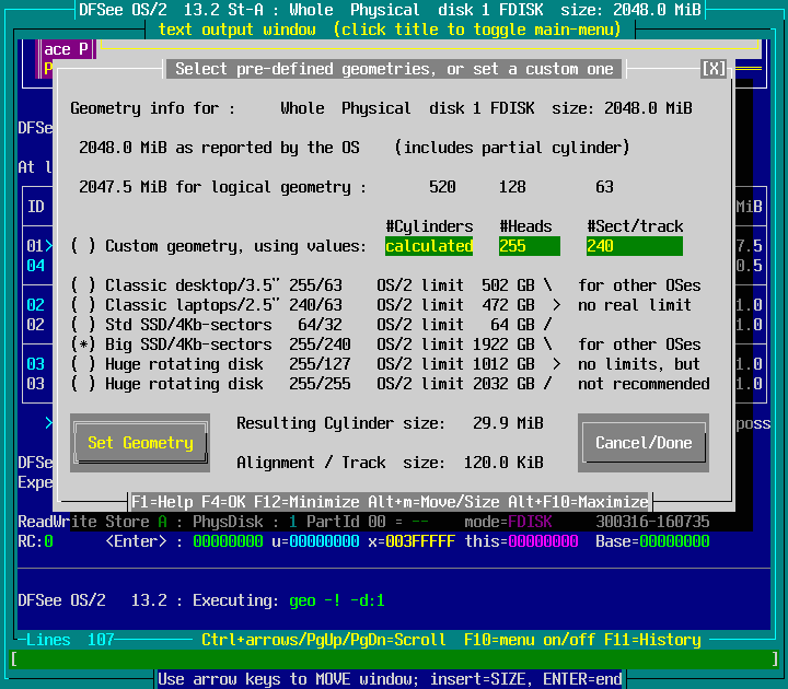 Mode=FDISK -> Show/Set disk Geometry : screenshot 2