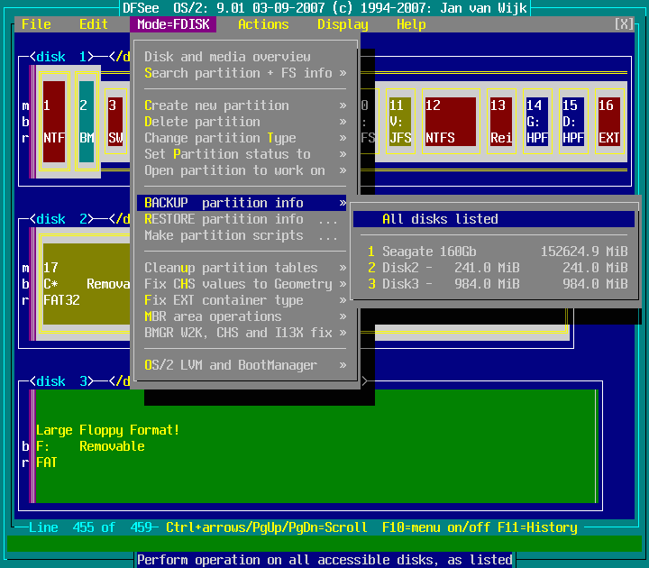 Mode=FDISK -> BACKUP partition info : screenshot 1