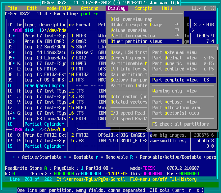 View -> Other partition views -> Part complete view, CS : screenshot 2