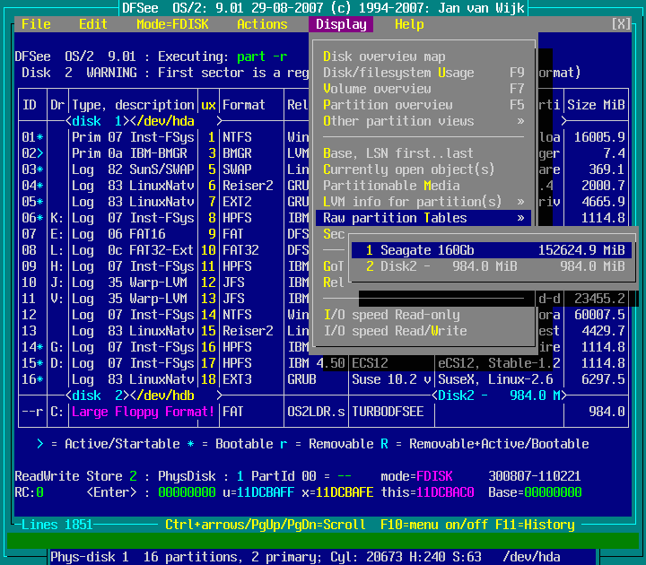 View -> Show RAW partition tables : screenshot 1