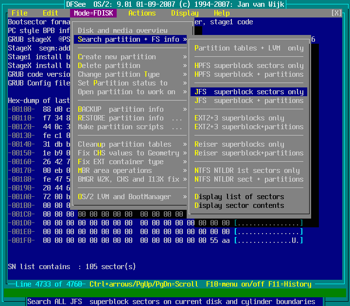 Mode=FDISK -> Search partition FS info -> Search FS superblocks only -> JFS : screenshot 2