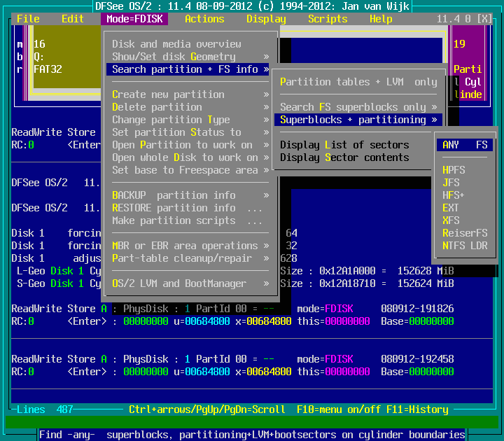 Mode=FDISK -> Search partition FS info -> Superblocks partitioning -> ANY FS : screenshot 3