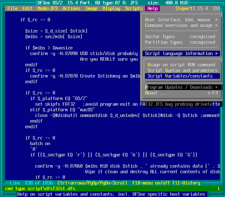 Help -> Script language information -> Script Variables/constants : screenshot 1