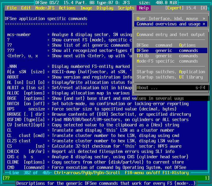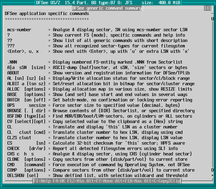 Help -> Command overviews and usage -> DFSee generic commands : screenshot 2