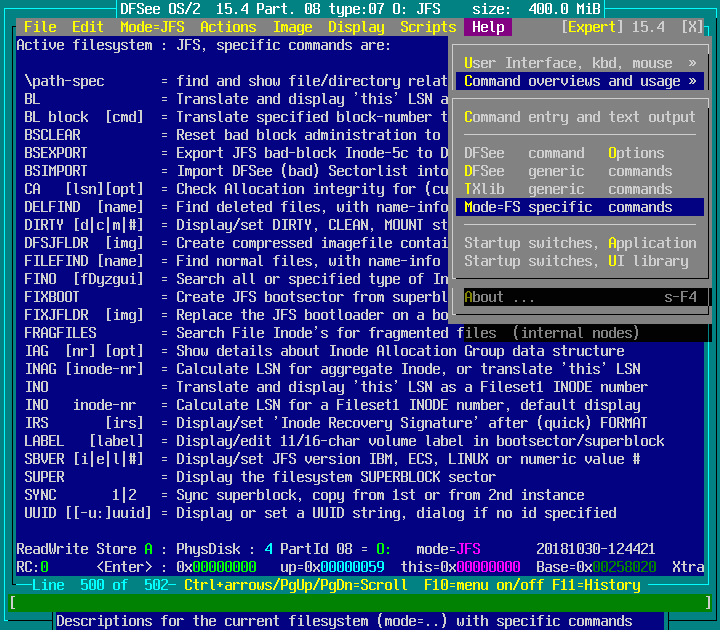 Help -> Command overviews and usage -> Mode=FS specific commands : screenshot 2