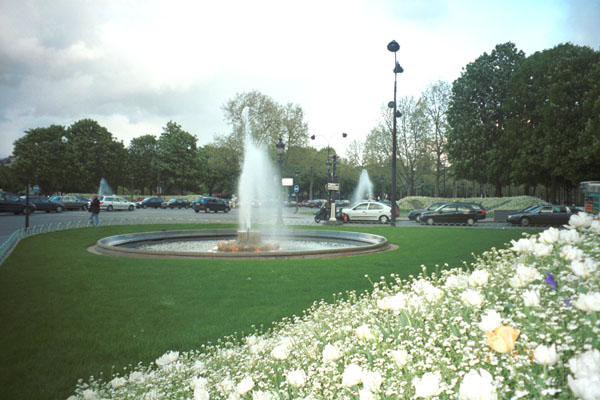 Roundabout with fountain and flowers at the Champs Elysee