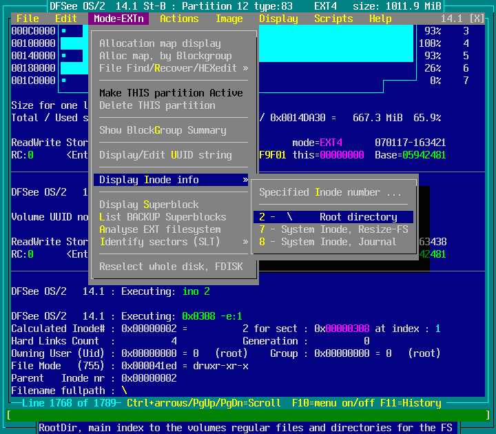DFSee menu documentation for pulldown : Mode=EXTn : screenshot 1