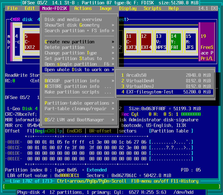 DFSee menu documentation for pulldown : Mode=FDISK