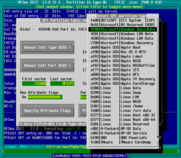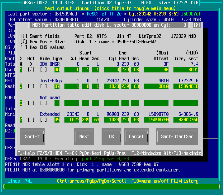 Mode=FDISK -> Partition-table operations -> Edit Partition tables : screenshot 6