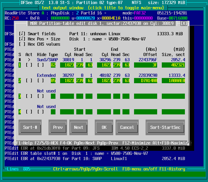 Mode=FDISK -> Partition-table operations -> Edit Partition tables : screenshot 8