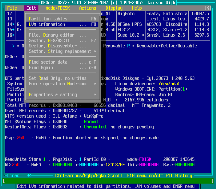 Mode=FDISK -> OS/2 LVM and BootManager -> Edit LVM information : screenshot 1