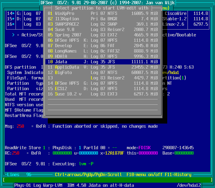 Mode=FDISK -> OS/2 LVM and BootManager -> Edit LVM information