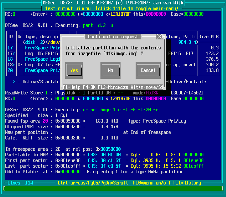 Mode=FDISK -> OS/2 LVM and BootManager -> Bootmanager Install : screenshot 5
