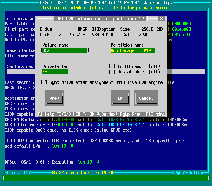 Mode=FDISK -> OS/2 LVM and BootManager -> Bootmanager Install : screenshot 2