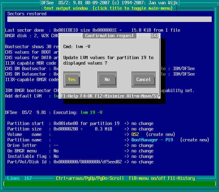 Mode=FDISK -> OS/2 LVM and BootManager -> Bootmanager Install : screenshot 7