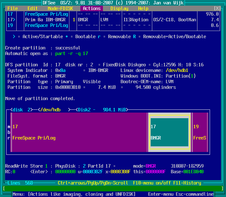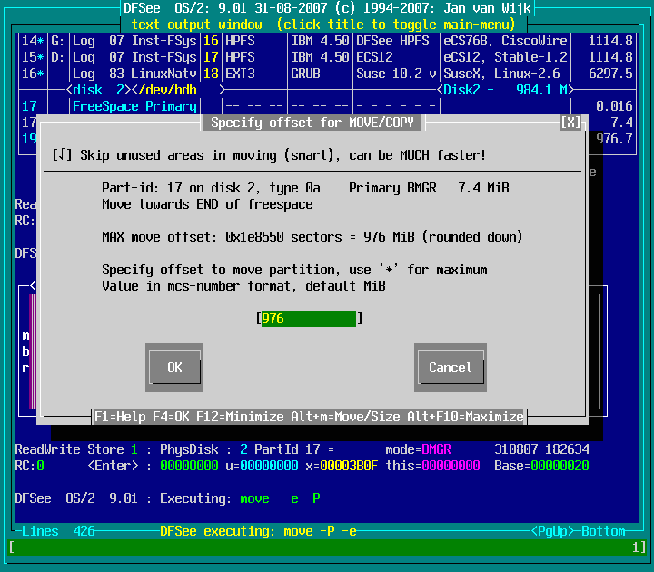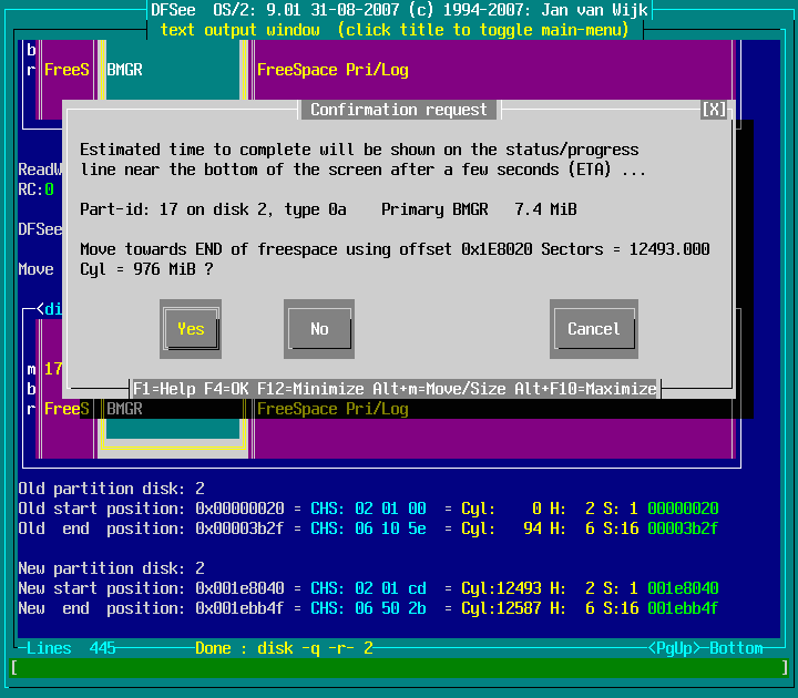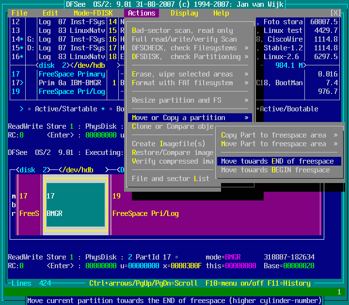 Actions -> Move or Copy a partition -> Move towards END of freespace : screenshot 2