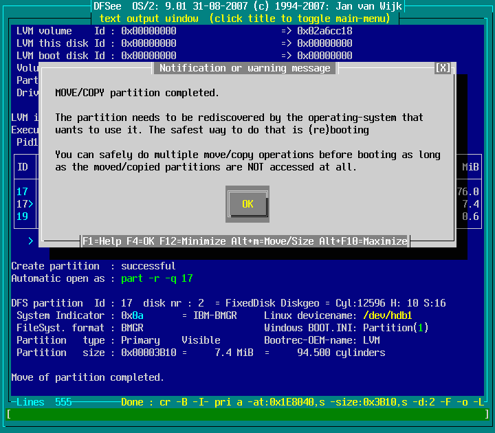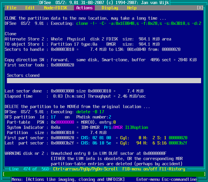 Actions -> Move or Copy a partition -> Move towards END of freespace : screenshot 7