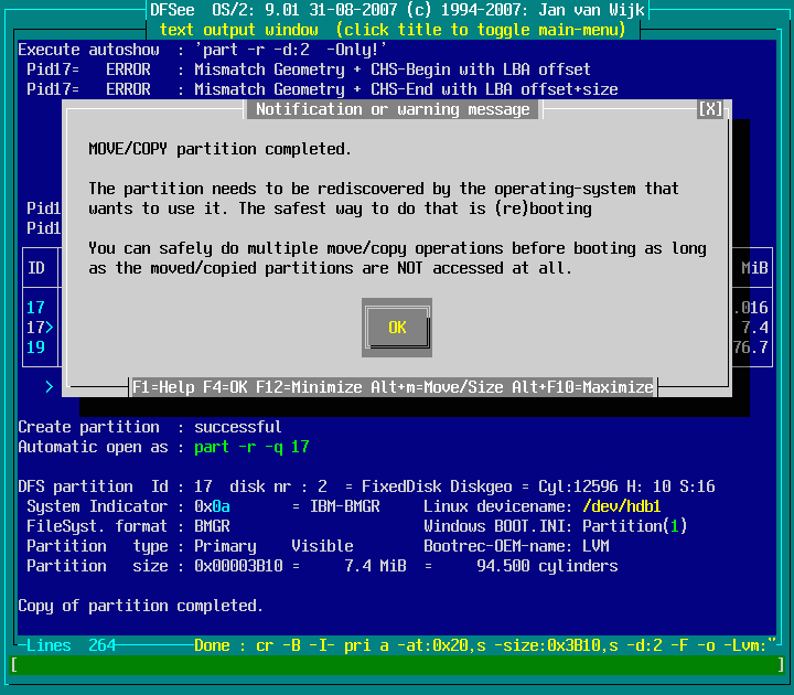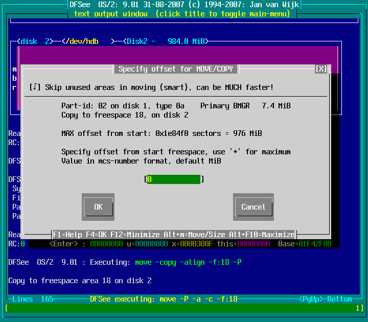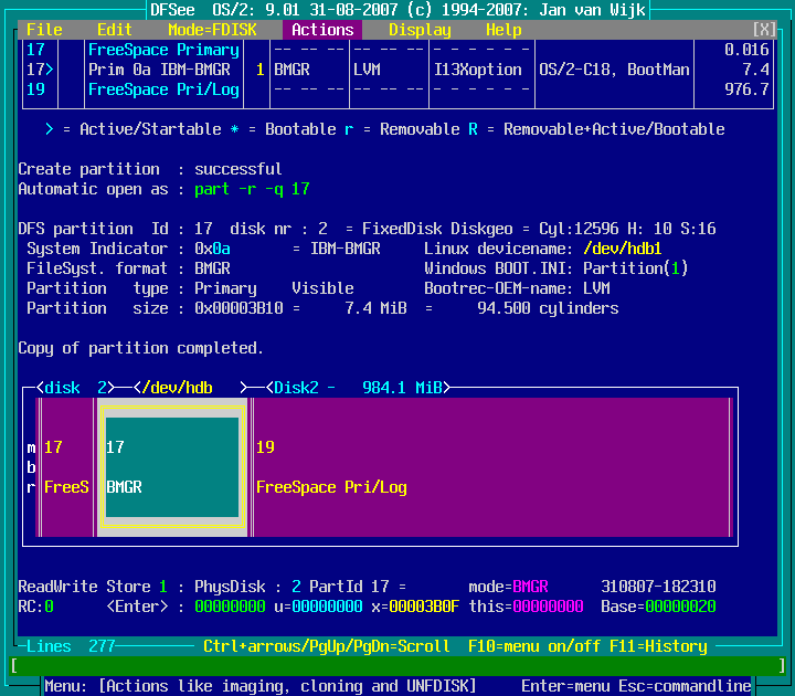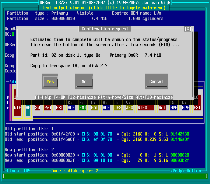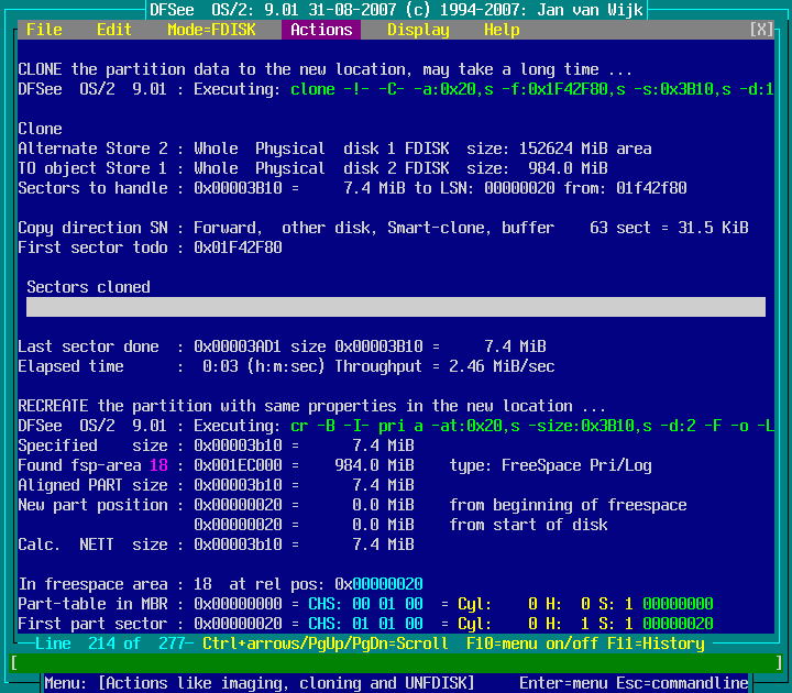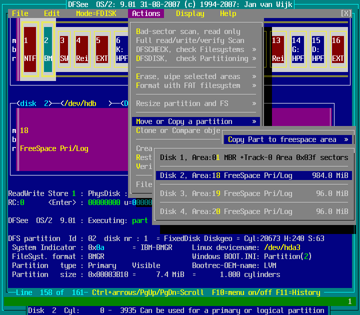 Actions -> Move or Copy a partition -> Copy Part to freespace area : screenshot 7