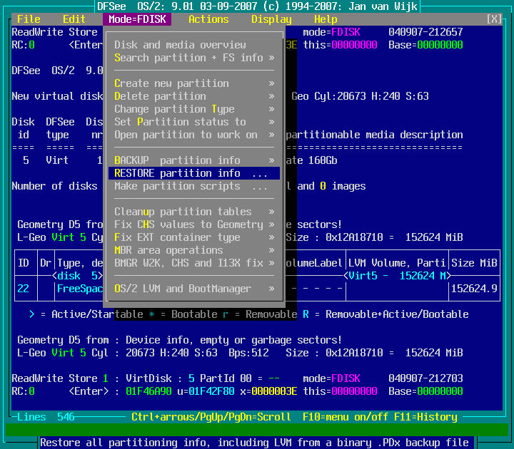 Mode=FDISK -> RESTORE partition info : screenshot 5