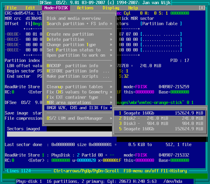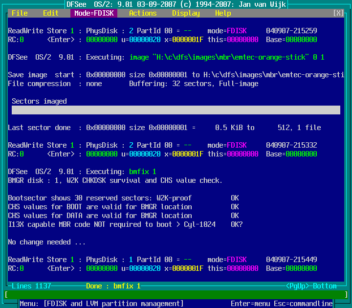 Mode=FDISK -> OS/2 LVM and BootManager -> BMGR W2K, CHS and I13X fix : screenshot 1
