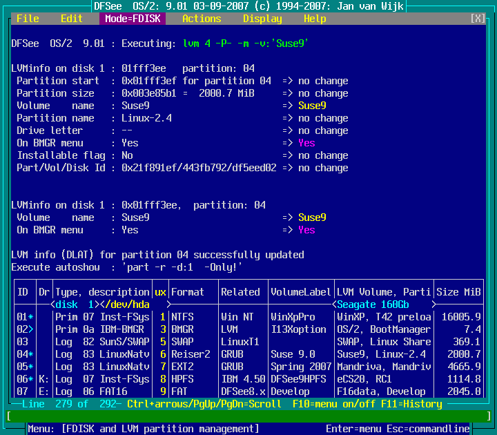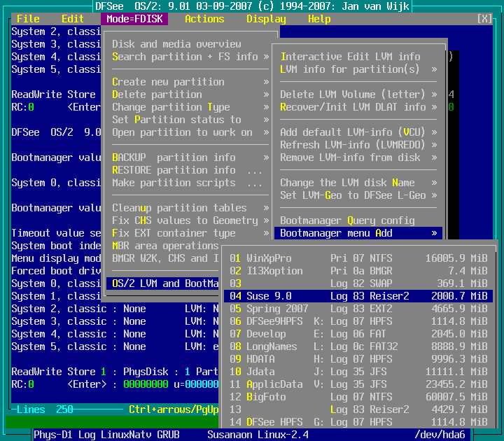 Mode=FDISK -> OS/2 LVM and BootManager -> Bootmanager menu Add