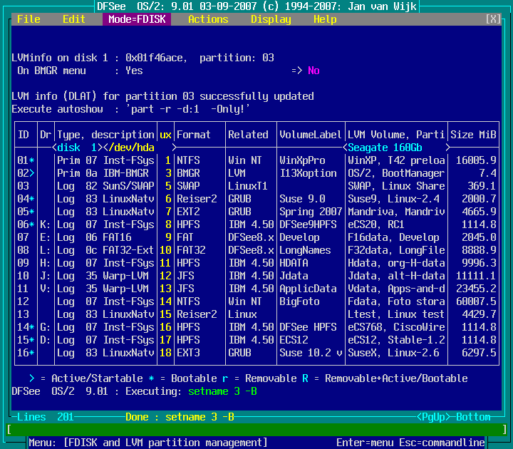 Mode=FDISK -> OS/2 LVM and BootManager -> Bootmanager menu Delete : screenshot 1