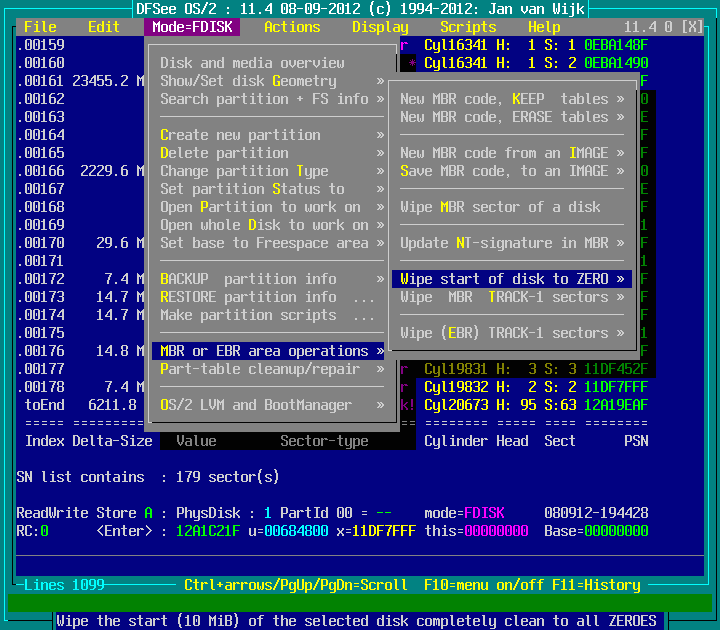 Mode=FDISK -> Partition-table operations : screenshot 1
