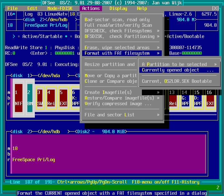 Actions -> Format with FAT filesystem -> Currently opened object ... : screenshot 1