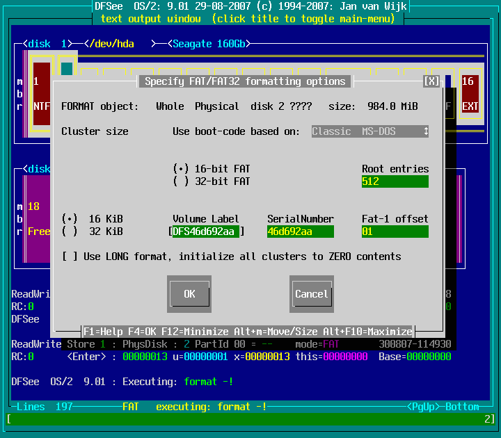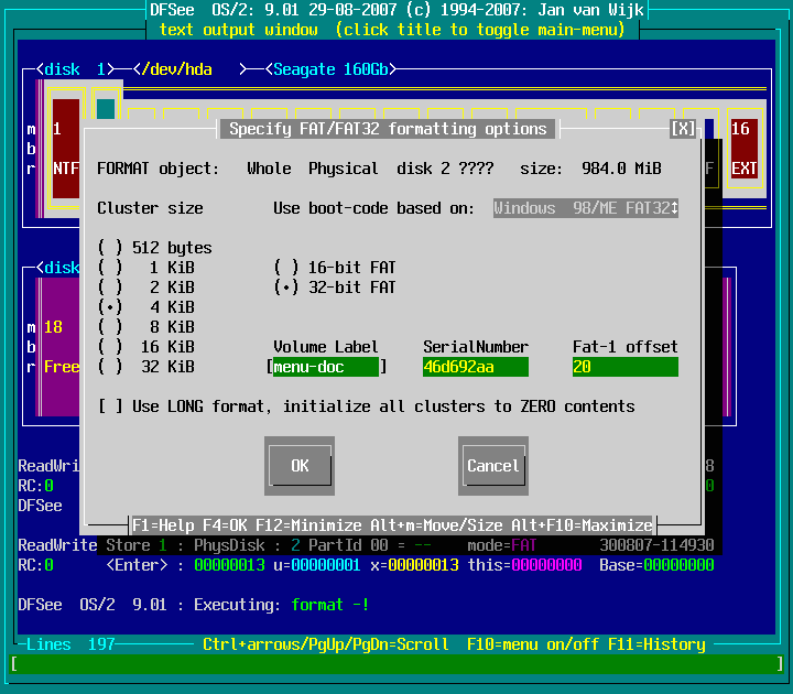 Actions -> Format with FAT filesystem -> Currently opened object ... : screenshot 4