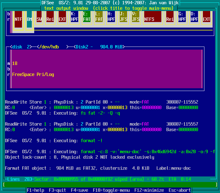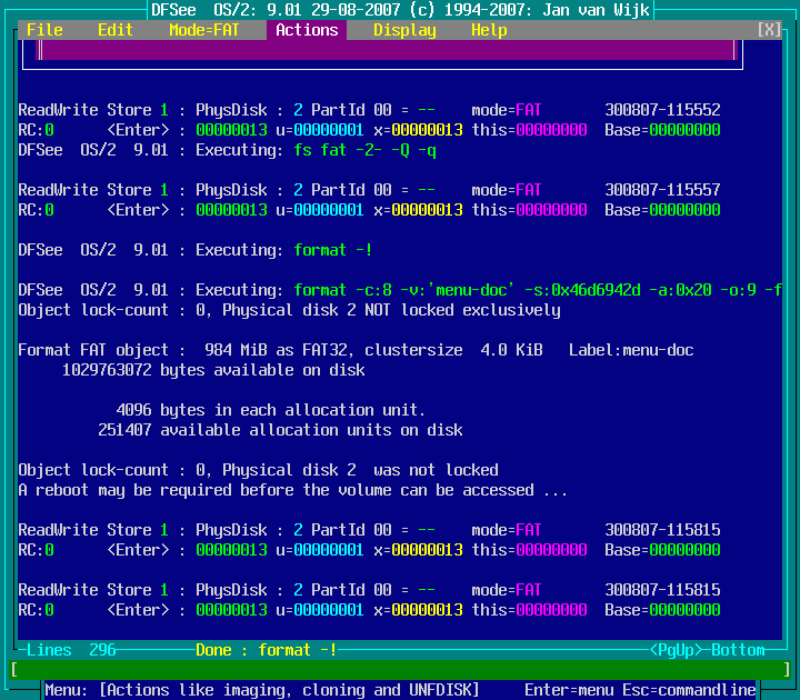Actions -> Format with FAT filesystem -> Currently opened object ... : screenshot 6