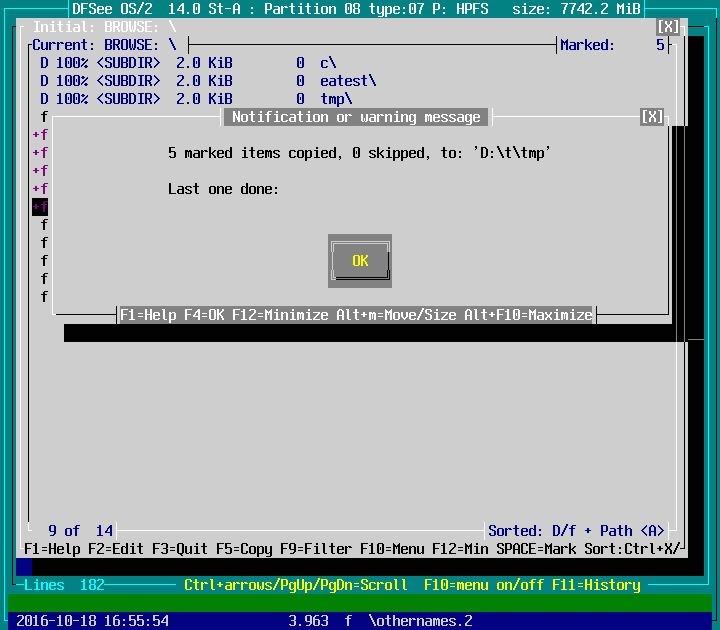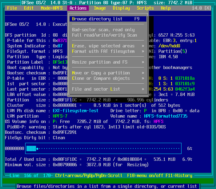Mode=HPFS -> File Find/Recover/HEXedit -> Browse FS, directory/files F9 : screenshot 6