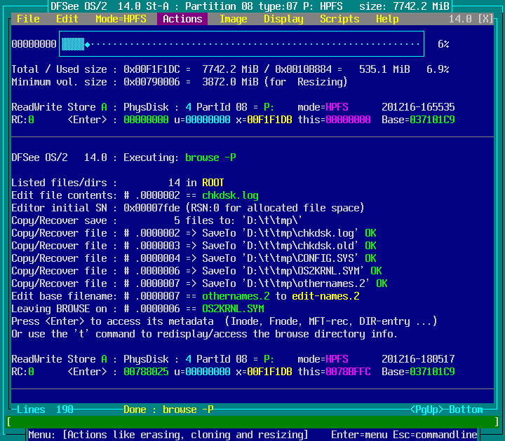 Mode=HPFS -> File Find/Recover/HEXedit -> Browse FS, directory/files F9 : screenshot 4