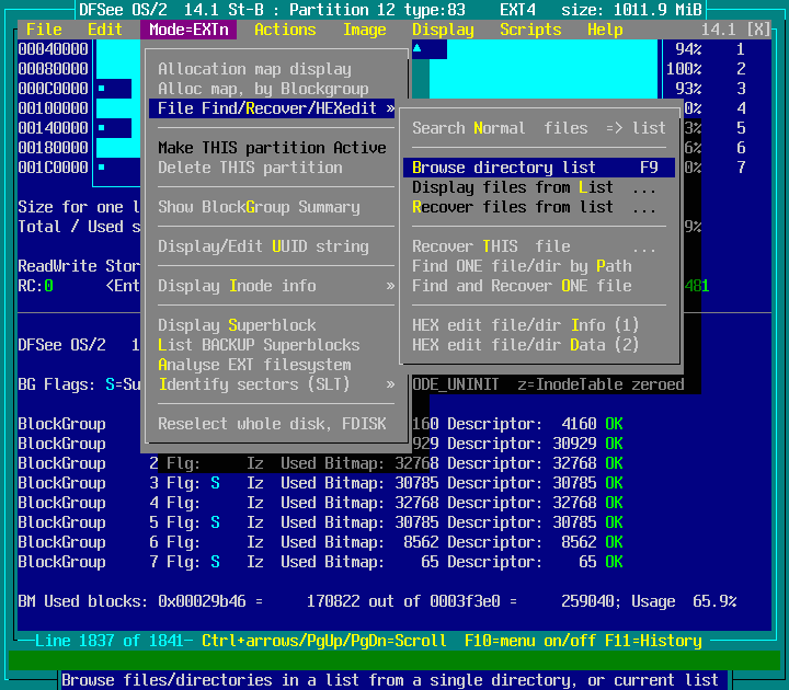 Mode=EXTn -> File Find/Recover/HEXedit : screenshot 1