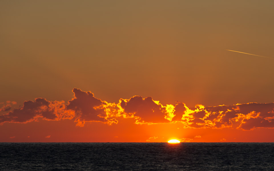 Sun setting over the Mediterranian sea at Matala, Crete